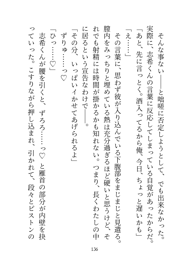 ハート喘ぎ、濁点喘ぎ、隠語表現、地の文での擬音語表現あり。Pixiv