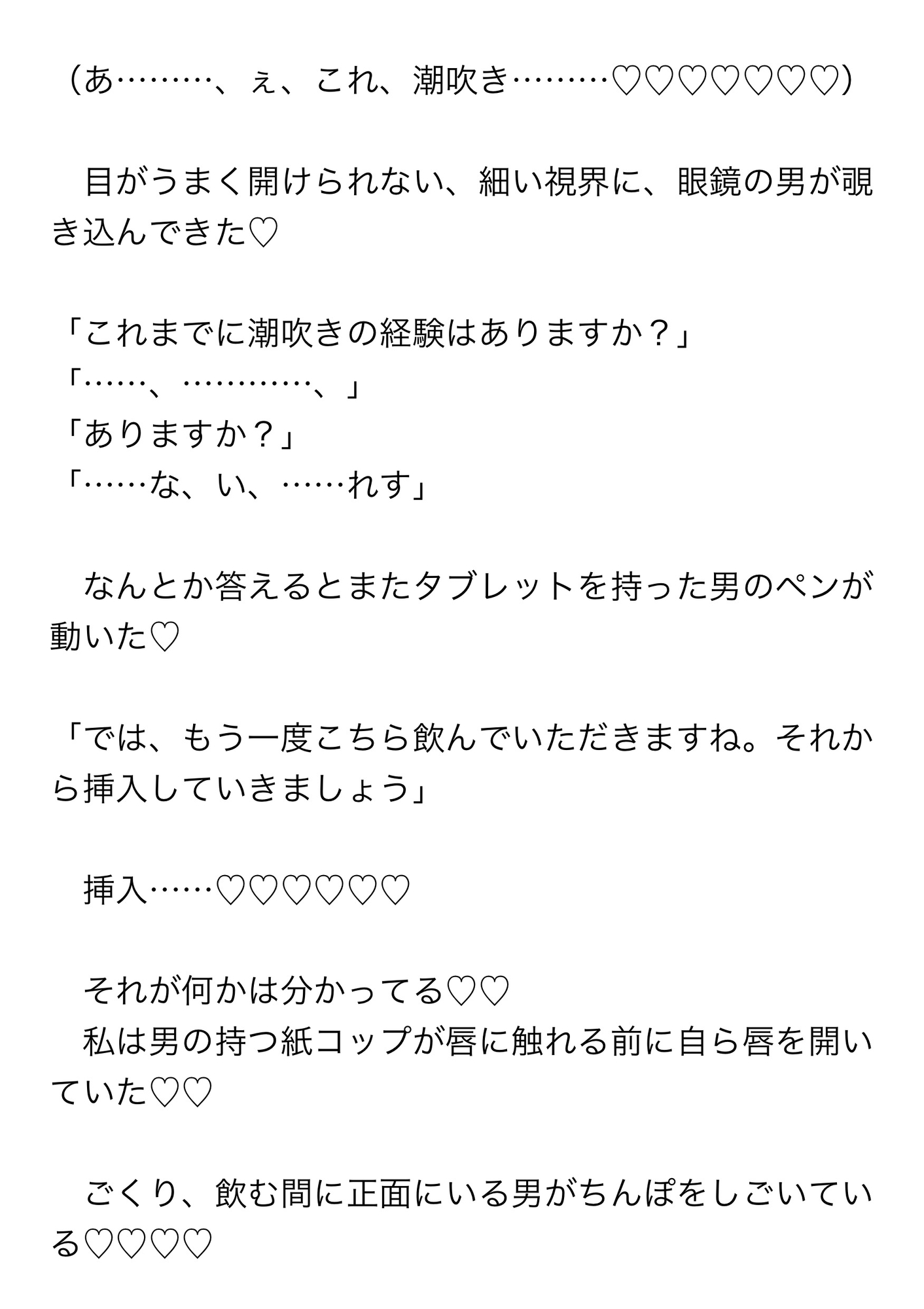 まさに怪しいとろみのある液体を飲まされ、あとから入ってきた白衣姿の四人の男たちに囲まれる主人公。