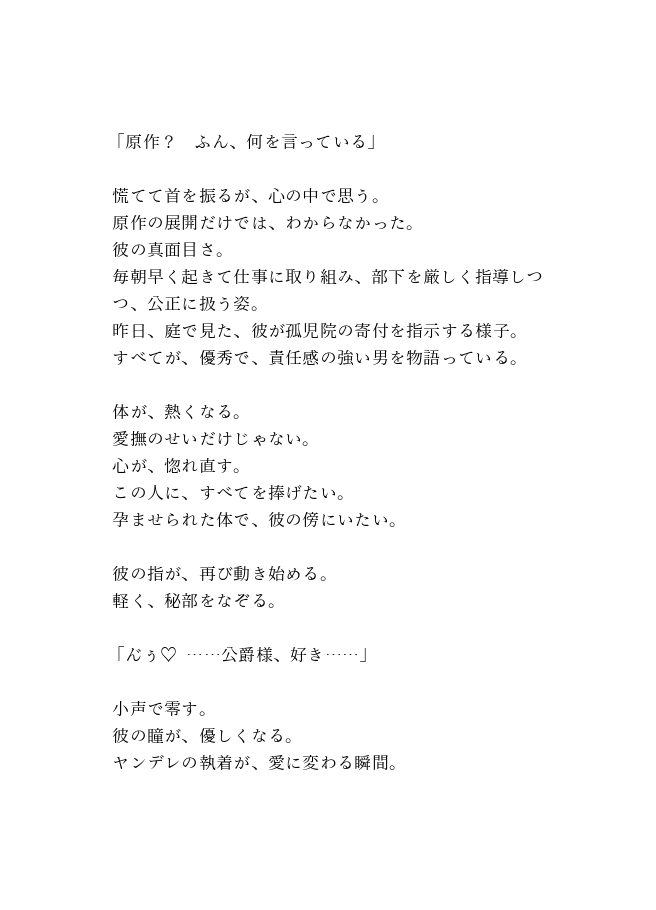 転生した悪役令嬢ソフィアは、原作のギロチン処刑を回避するため、公爵ヴィクトルに身を売り、メイドとして生き延びる道を選んだ。 しかし冷徹な彼の瞳に宿るのは、復讐ではなく歪んだ執着と愛。 毎日激しい調教を受けながら、昼は真面目に働き、夜は彼のものにされる日々……。 やがてヤンデレの炎は優しい愛に変わり、孕んだ体で永遠の誓いを交わす――。