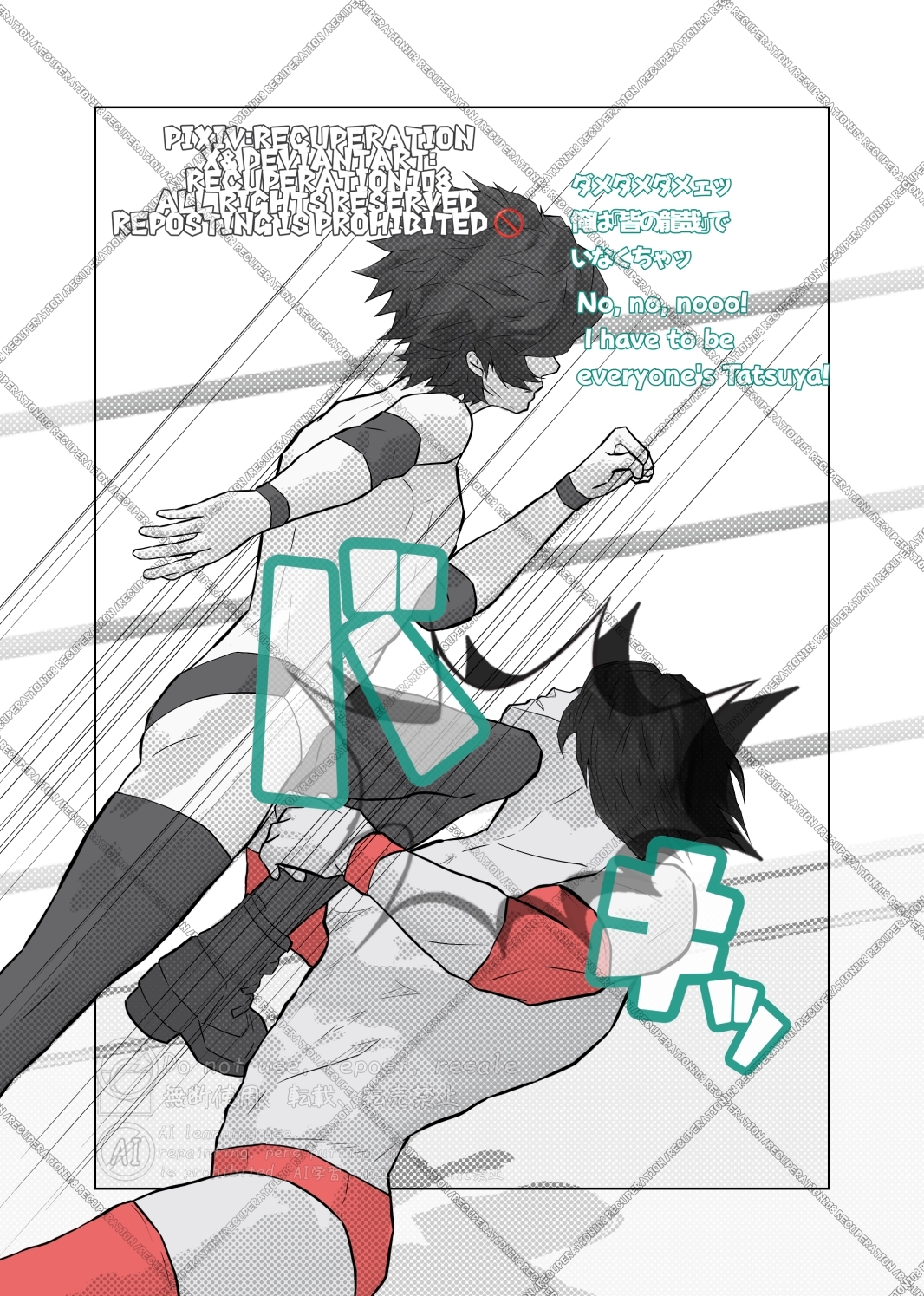 ガチムチ×メス男子のBLファイトもの、シーン別イラスト集です。本文15枚、文字なし差分15枚、ラフ15枚+オマケ画像付きです。