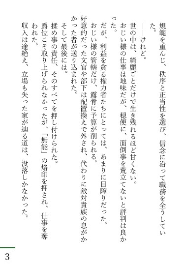 数代前に内乱・外征で決定的な戦功を挙げ、中央貴族に食い込む。現在は軍はもちろん、領地経営、政治的発言力をすべて持つ「機嫌を損ねると面倒な家」として周囲から一目置かれている。