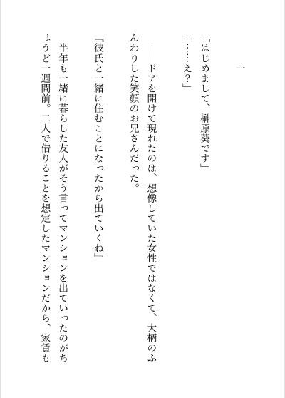 現れた「榊原葵」さんは、女性ではなく、大型犬のように人懐っこくて、家事万能なふんわりお兄さんだった。 初対面の男の人相手に緊張していた由紀だったけれど、数か月も経てば慣れてしまう。