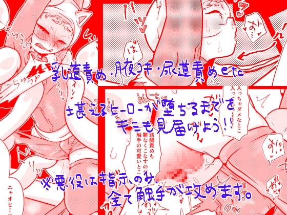触手で町を襲う悪を猫耳ヘルメットのヒーローが止めるべく立ちはだかる!が、即捕まってしまい…。