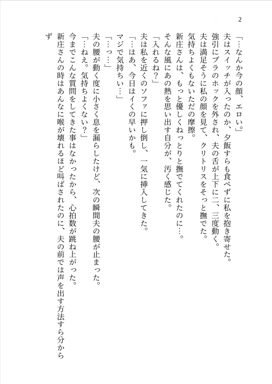 けれど夫とは比べものにならない執拗な指と舌、そして「上書き」される圧倒的な快楽に