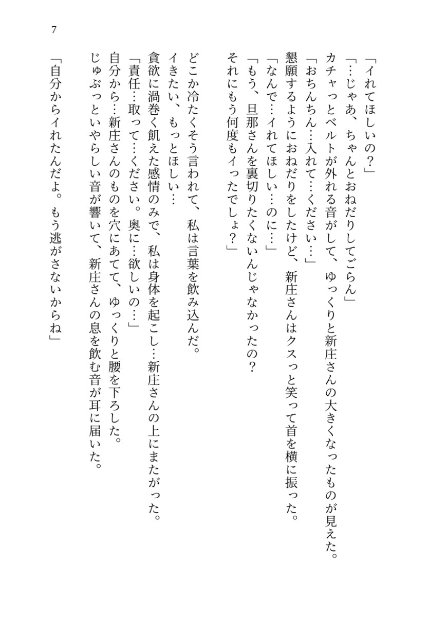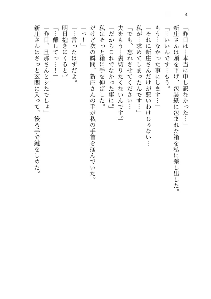 夫を愛そうと努めるが、新庄に与えられた快楽の「毒」に抗えない若妻。