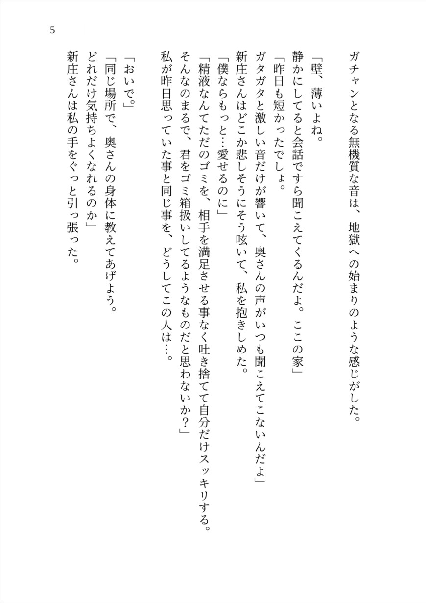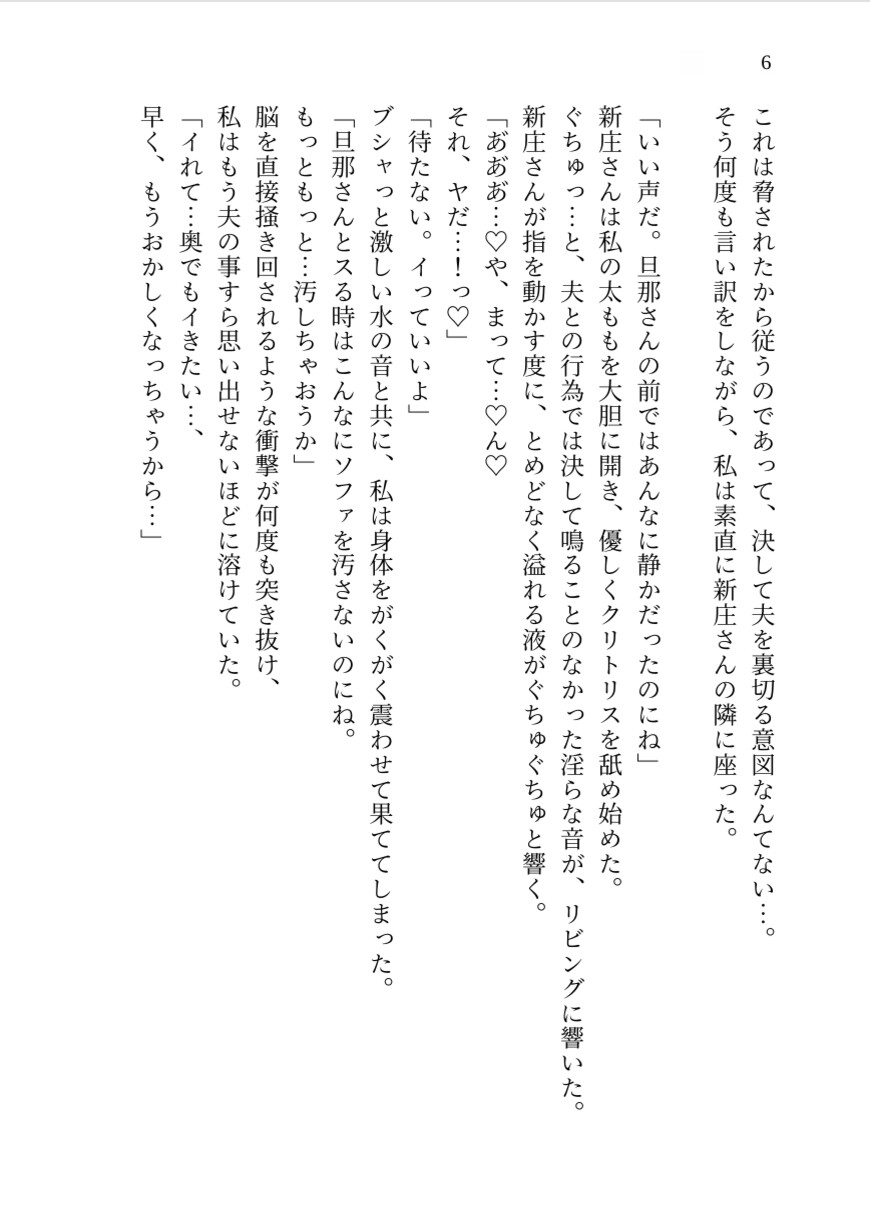 作品トーン: 心理描写重視/自発的堕落/夫との比較/上書き絶頂/泥沼/ドロドロ
