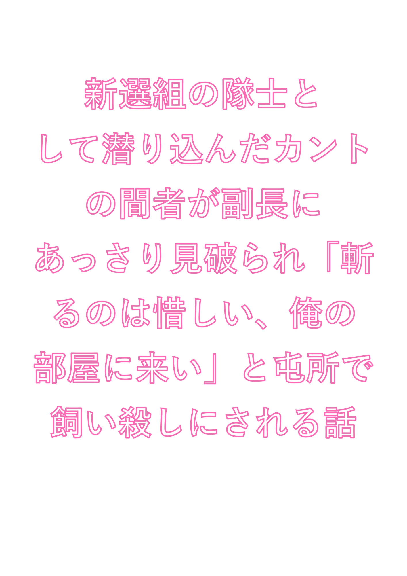 緊迫と官能が同時に押し寄せる、息もつけない濃密な一篇。「バレたら死ぬ」状況下で蕩かされていく背徳感を、どうぞ障子の向こうの隊士になったつもりで——耳を澄ませてお読みください。