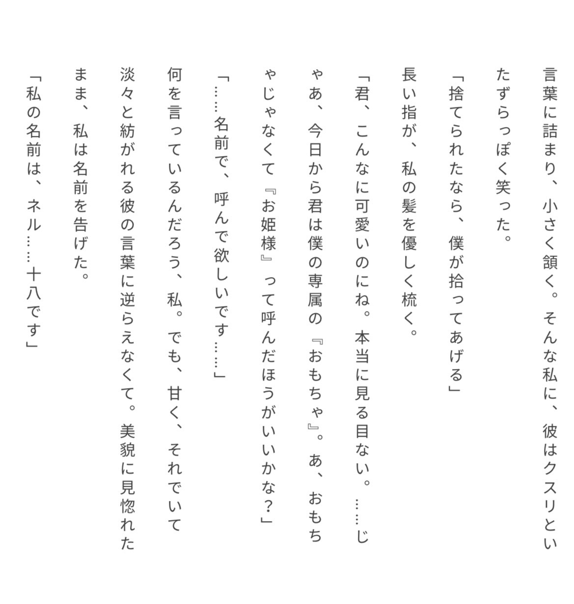 「今日から君は僕の専属の『おもちゃ』。……あ、やっぱり『お姫様』って呼んだほうがいいかな?」