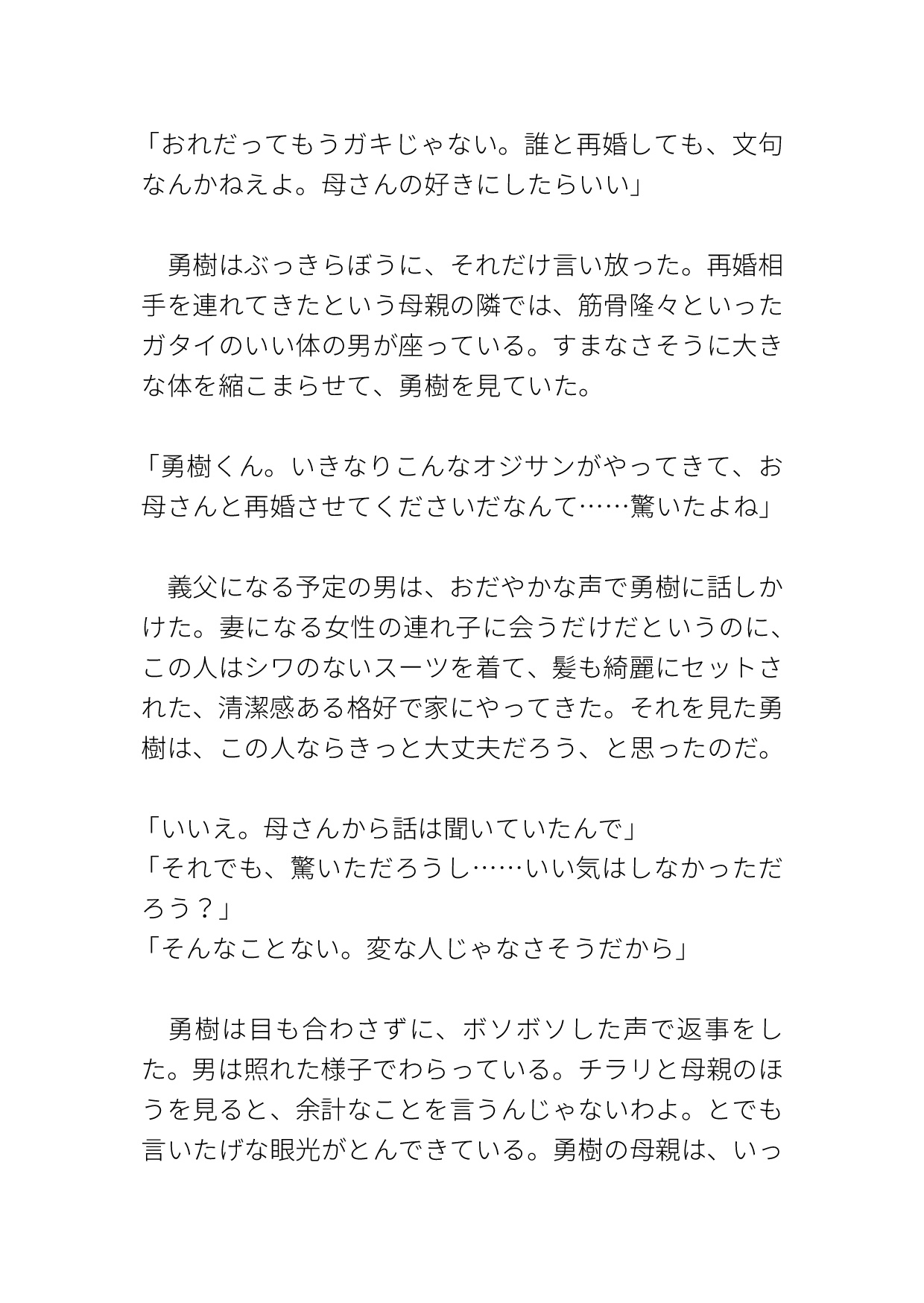 カントボーイである勇樹は、母親が再婚したことで、ガチムチな義父と家族3人で暮らすことになった。