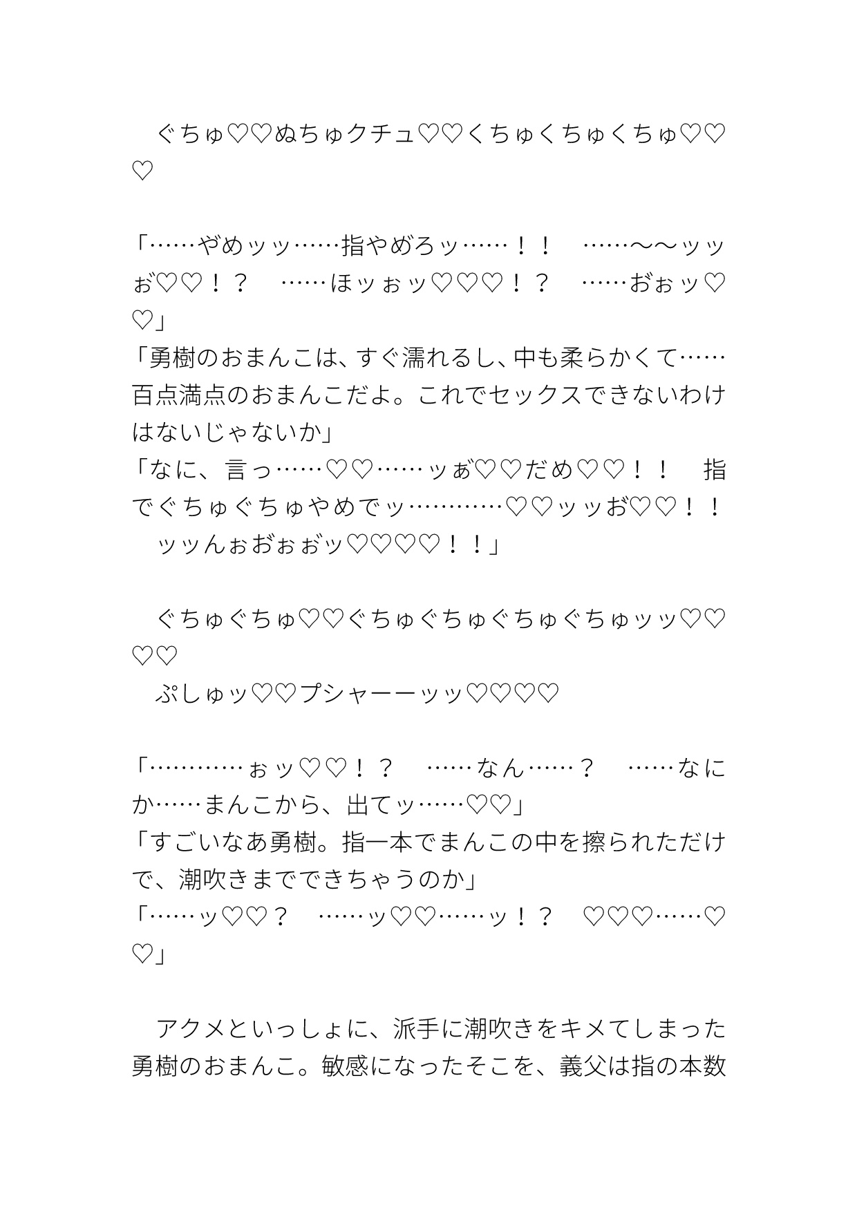 ある日、勇樹が風呂に入っているところへ義父も入ってきて、手マンで潮吹きさせて中出しまでする。