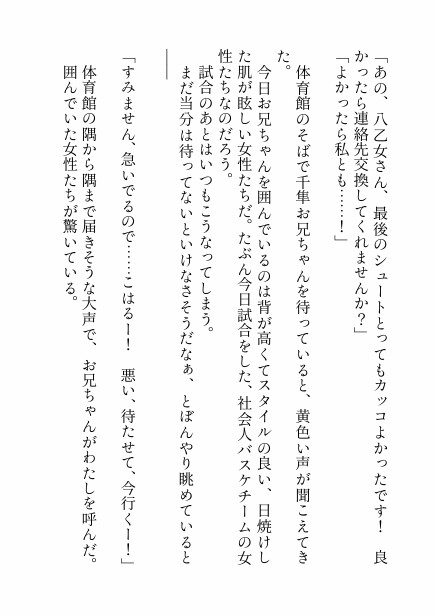 今日も助っ人のバスケ試合後、千隼お兄ちゃんはスタイルのいい美人たちに囲まれていた。
