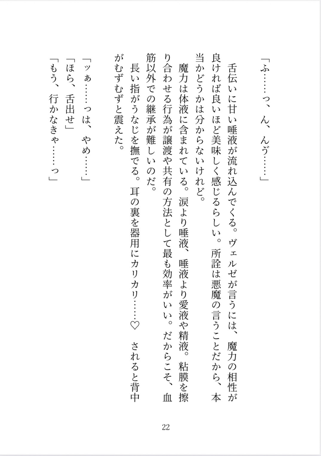 悪魔としての格は高く、人間の精気や魔力は嗜好品であり今まで滅多に口にすることはなかったが、魔女(あなた)は特別。紋を刻んでまで縛りつけたのは、長い生の中で初めてのこと。