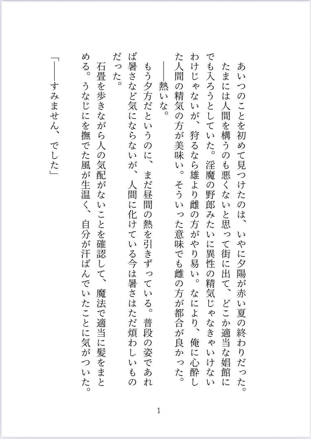 生業とする薬屋の仕事も上手くいかず、頼れる人はおろか話し相手もいない毎日。孤独感に耐えられず、母が遺した古い魔導書に記されていた召喚魔法を試みた。言葉を交わす小さな精霊がきてくれると期待して。しかし召喚できたのは、明らかに上位であると分かる男の悪魔で――。