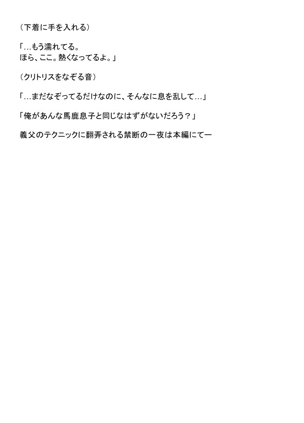 夫の帰りを待つ身でありながら、義父の甘い指導で快楽を刻み込まれる話。ジャンル: シチュエーションボイス台本(R-18)