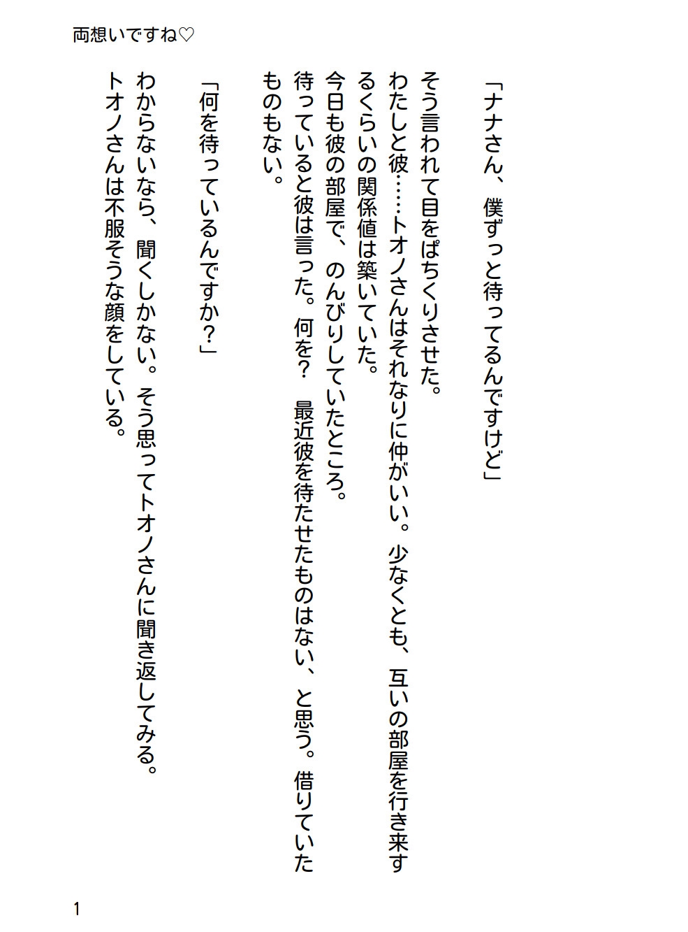 仲が良かったトオノから告白を受けたナナ。受け入れた先にはラブラブえっちが待っていて……♡