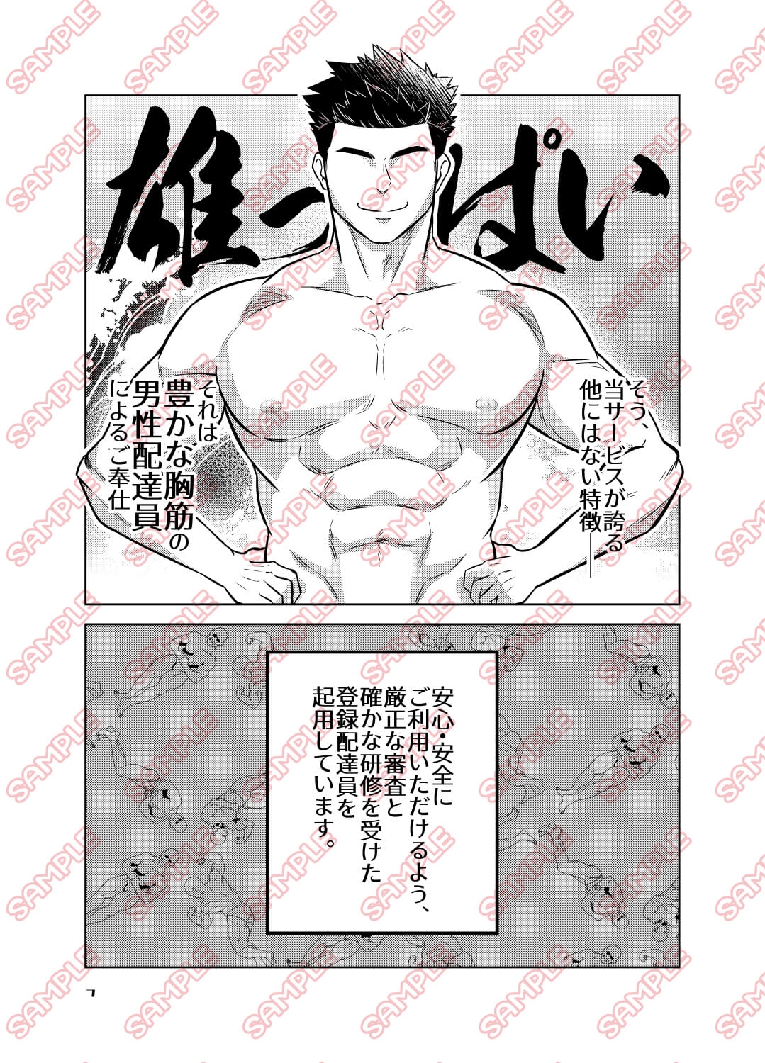 それは、豊かな胸筋の男性配達員による元気いっぱい包容力いっぱいのご奉仕。